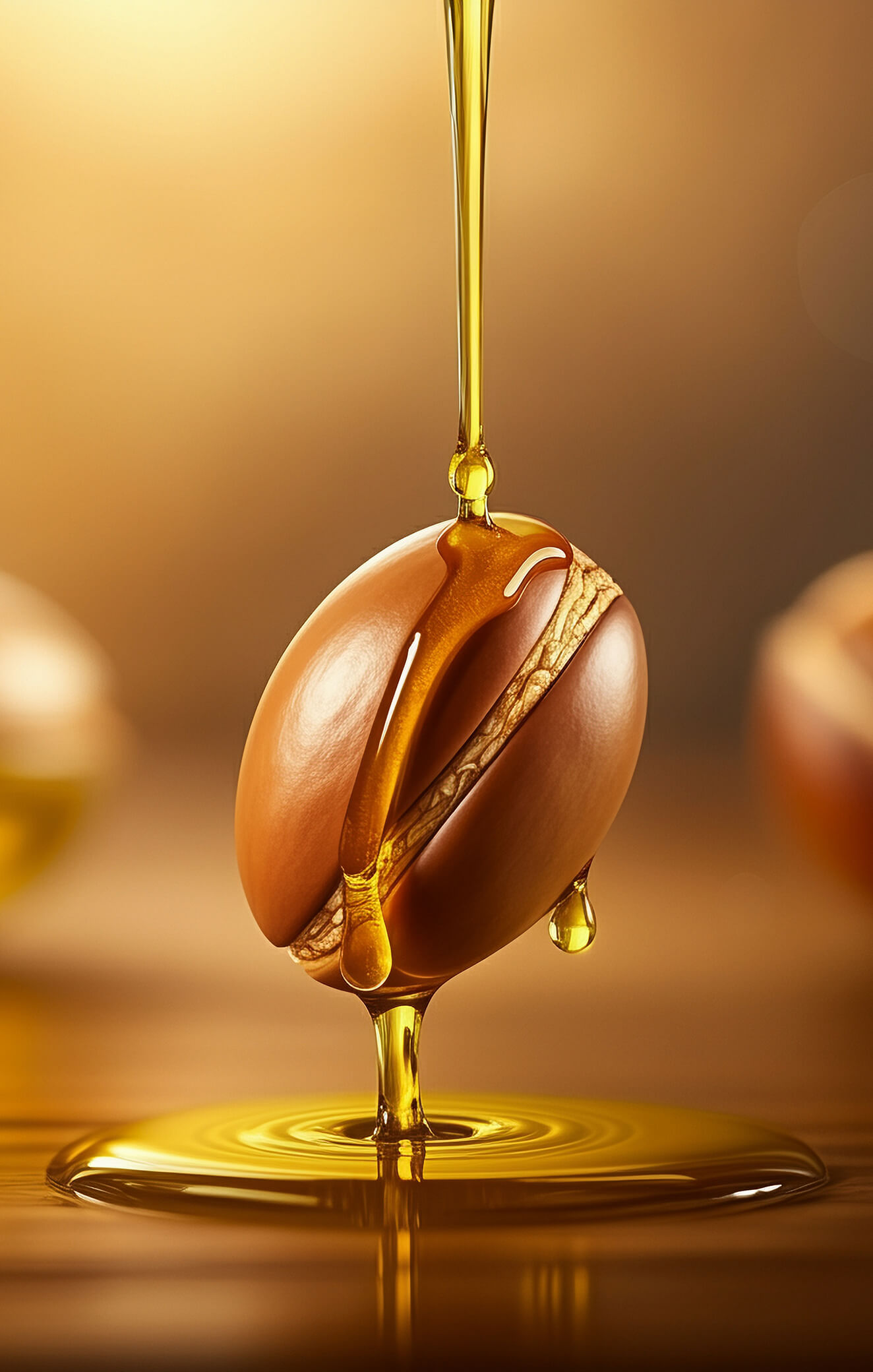 Ценное масло арганы пришло к нам из Марокко. Оно обладает золотистым оттенком и приятным ореховым ароматом. Добывают натуральный продукт из плодов аргании — ветвистого дерева родом с северо-запада Африки. Чтобы получить 1 литр натурального арганового масла, нужно переработать около 100 кг плодов. Поэтому каждый миллилитр натурального продукта высоко ценится.